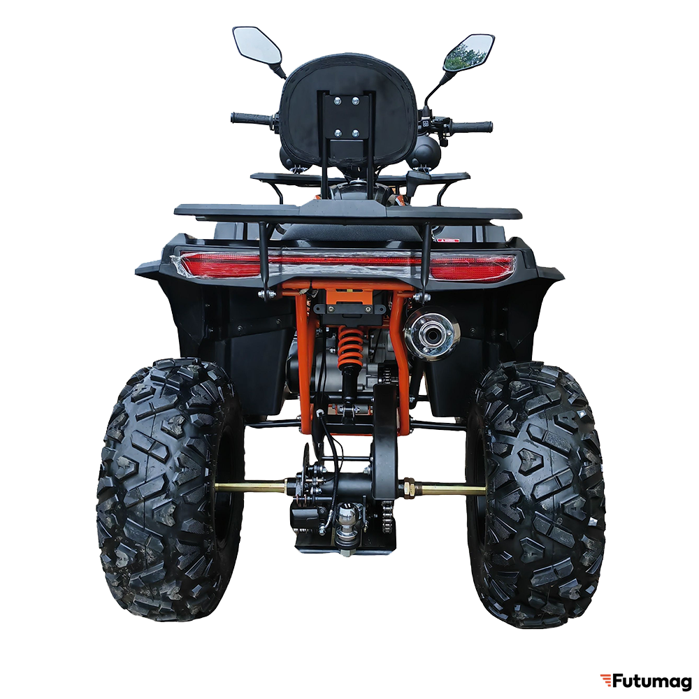 Квадроцикл выполнен из прочных материалов, что гарантирует его долговечность и надежность. Цепная главная передача и цепной привод на заднюю ось обеспечивают стабильную работу и минимальные потери мощности.