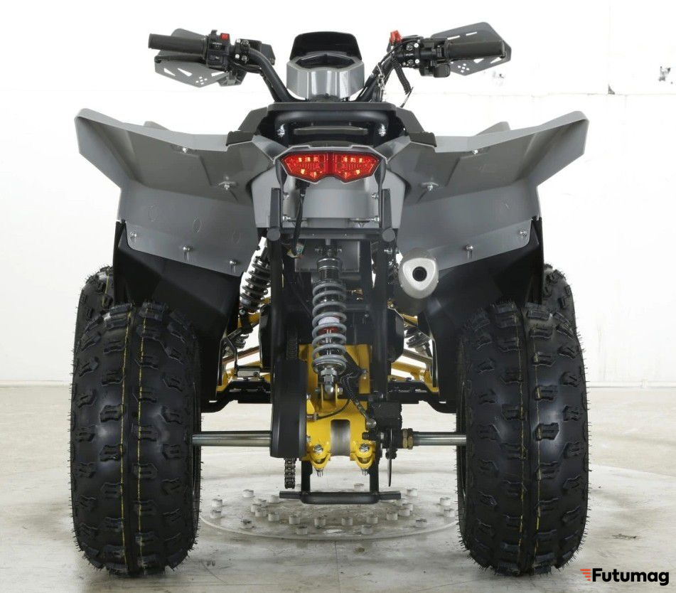 Подвеска квадроцикла состоит из маятниковой передней и зависимой задней системы, что обеспечивает отличную управляемость и комфорт во время поездок. Размеры шин составляют 18*7-8 (передние) и 18*9-8 (задние), что позволяет уверенно справляться с различными типами местности.
