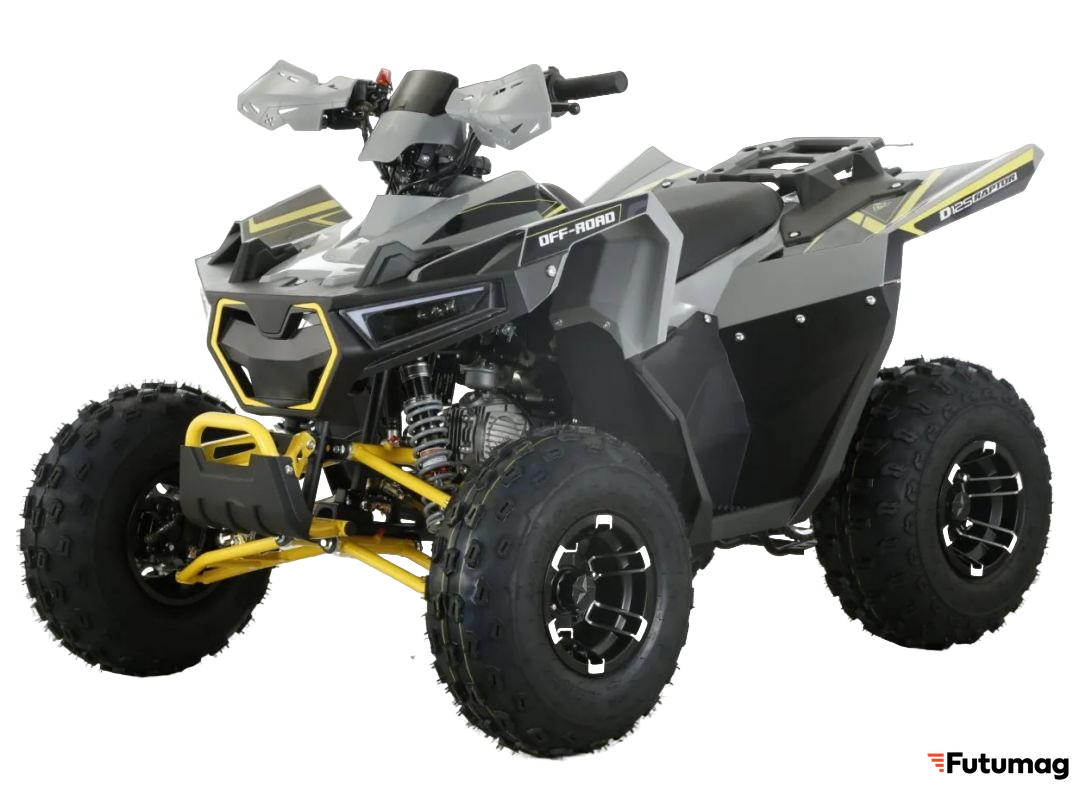 Квадроцикл оснащен бензиновым двигателем объемом 125 см³ и мощностью 10 л.с., что обеспечивает отличную производительность. Воздушное охлаждение двигателя гарантирует его стабильную работу даже в условиях высокой нагрузки. Электрический стартер позволяет легко запускать двигатель, что особенно удобно в любых ситуациях.