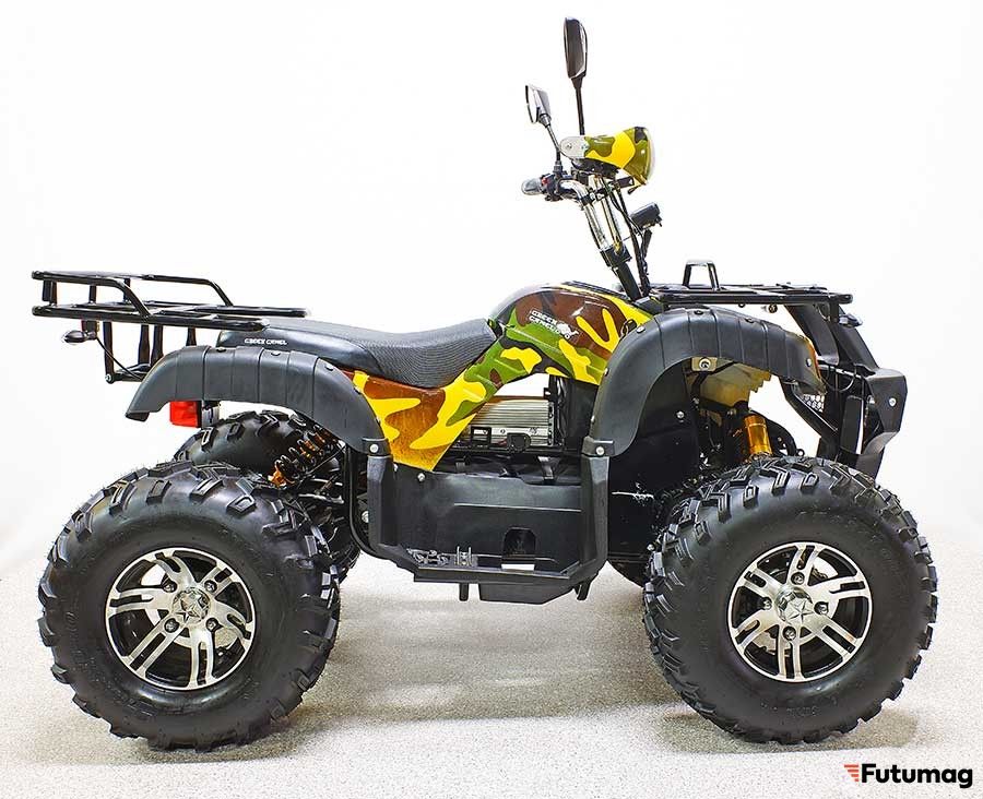 ПроизводительGreenCamelВозрастная категорияВзрослый (от 10 лет)Напряжение60 VМощность мотора4000 ВтТип мотораBLDC*2Тип передачиДифференциалМаксимальная скорость40 км/чЕмкость аккумулятора52 мАчТип аккумуляторагелевый SLA ChilweeРесурс аккумулятора700 цикловПробег на одном заряде35 кмМаксимальная нагрузка200 кгТормозная системаГидравлические дисковые - спереди и сзадиКолесные дискиR10 alumРазмер шин23*7-10' (передние) ; 22*10-10' (задние)Зарядное устройство110-240V, 7AВремя полной зарядки8 чВес Нетто240 кгЦветАрмейский зеленыйСтрана производстваРоссияКолесная База1000 ммДорожный Просвет85 ммПреодолеваемый угол40 %ПримечанияОтключаемый передний привод,Сигнал,LCD дисплей,3-х скоростной переключатель с ключом, фаркоп,зеркалаФары \ ходовые огниесть -