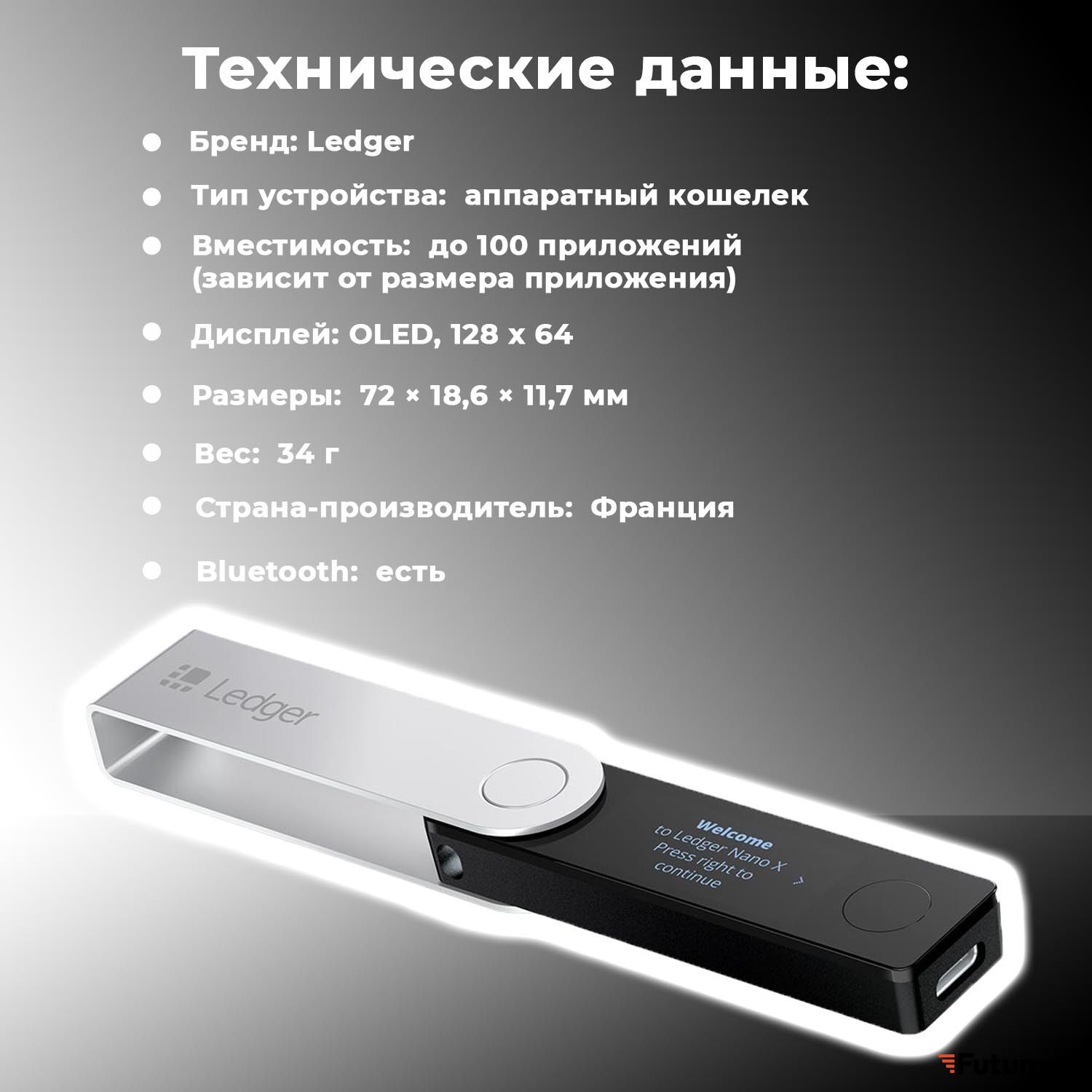 Вес34 гПроизводительLedgerТип устройствааппаратный кошелекВместимость100ЧипыST33J2M0 (secure) + STM32WB55Совместимость со смартфонамиiOS 9+ или Android 7+Уровень сертификацииCC EAL5+Вес в упаковке, г34 -