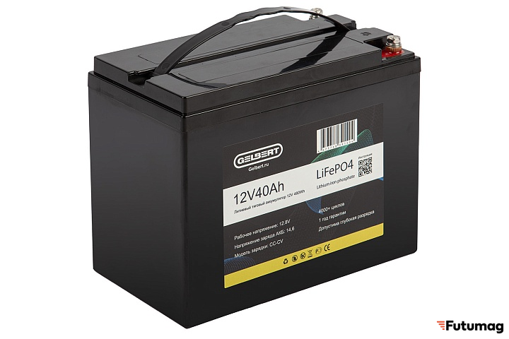 БрендGelbertЕмкость40000 mAhТипLiFePO4Напряжение12 VВремя зарядки8 чЕмкость аккумулятора480 WhВес4.6 кгТок зарядки40 AЦветЧерныйДлина222 ммШирина123 ммВысота178 мм -