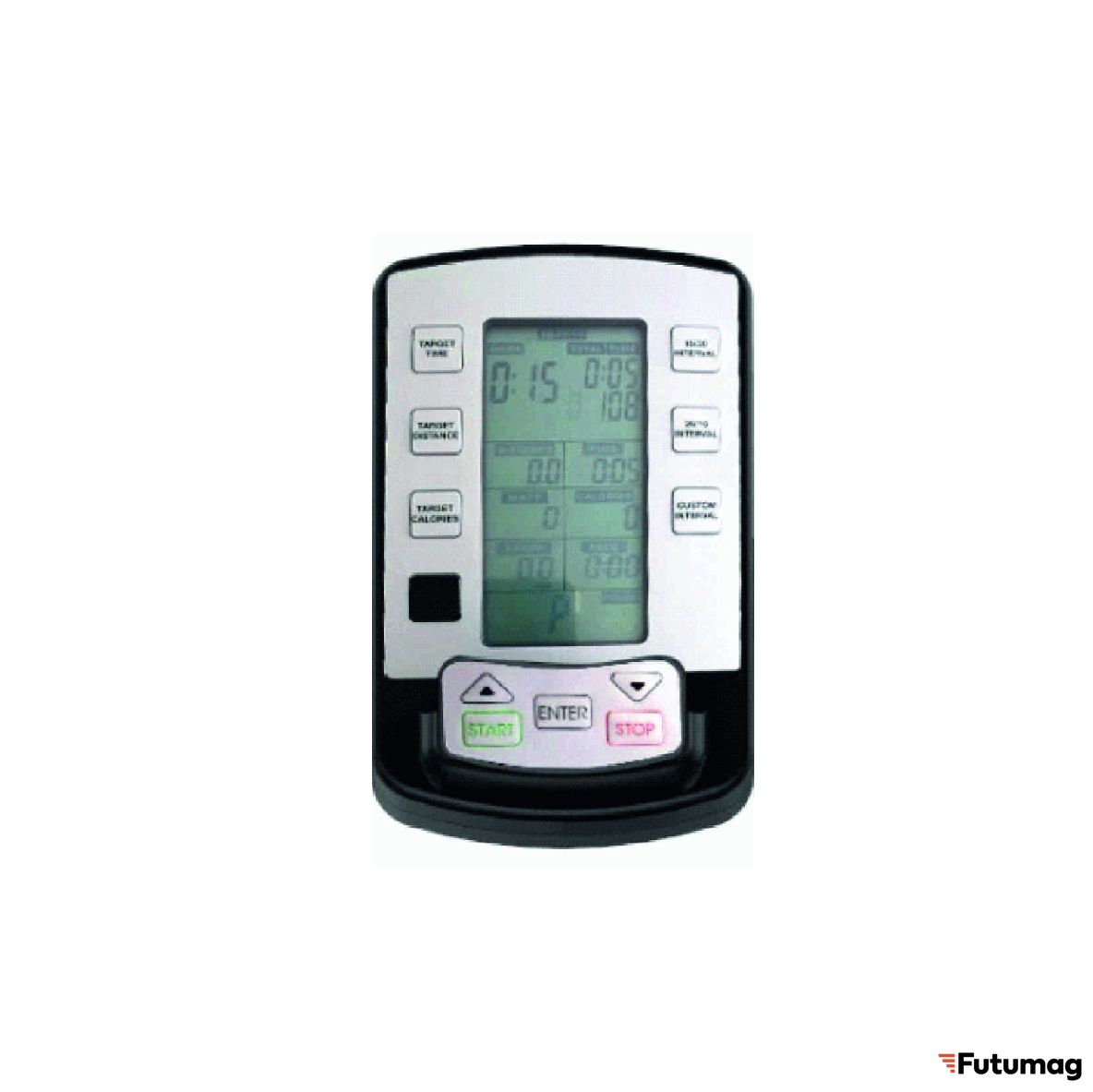 - ЖК-дисплей отображает основные параметры: время, скорость, дистанция, калории, пульс. Можно использовать кардиопояс для отслеживания результатов (не идёт в комплекте).