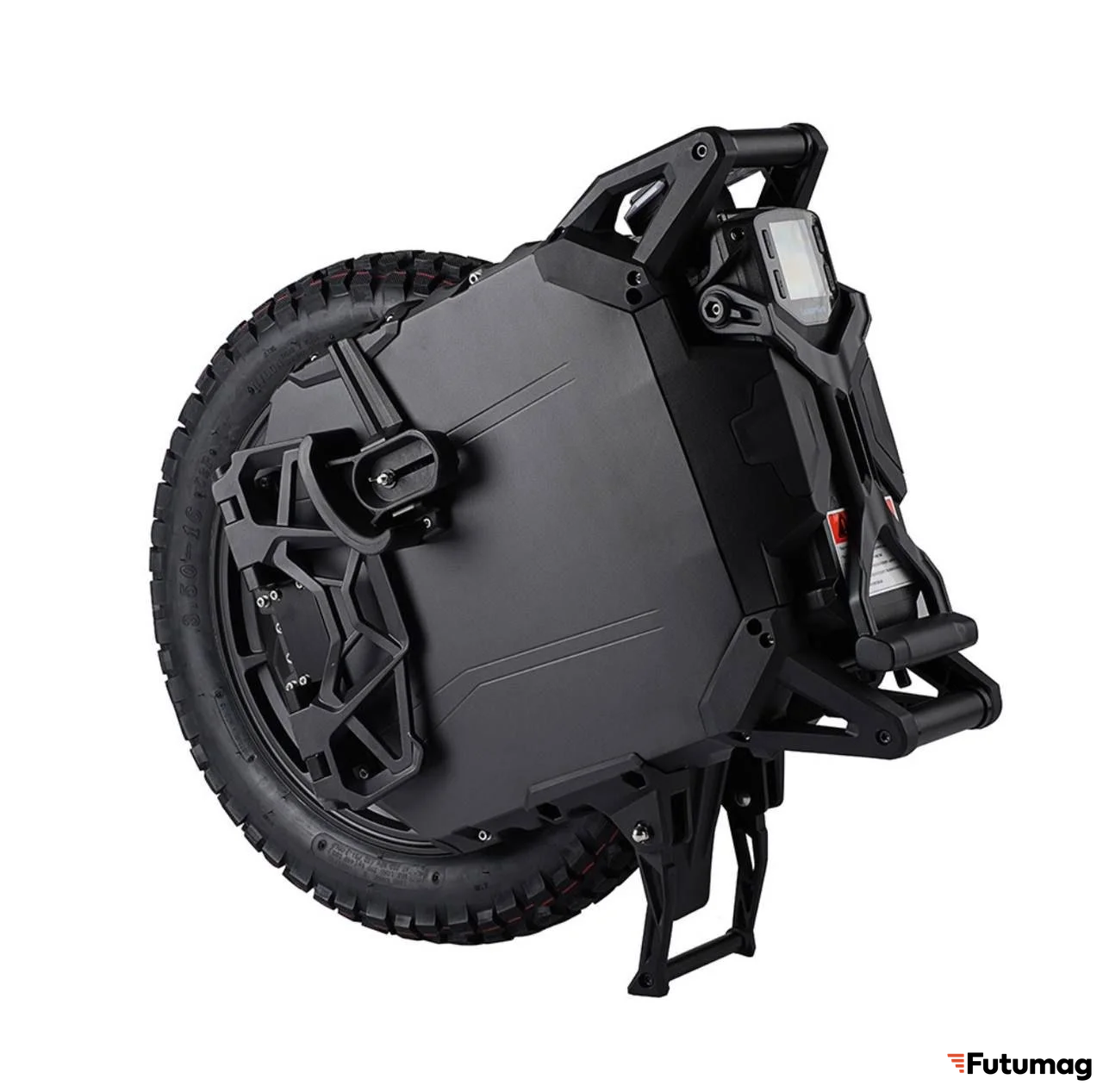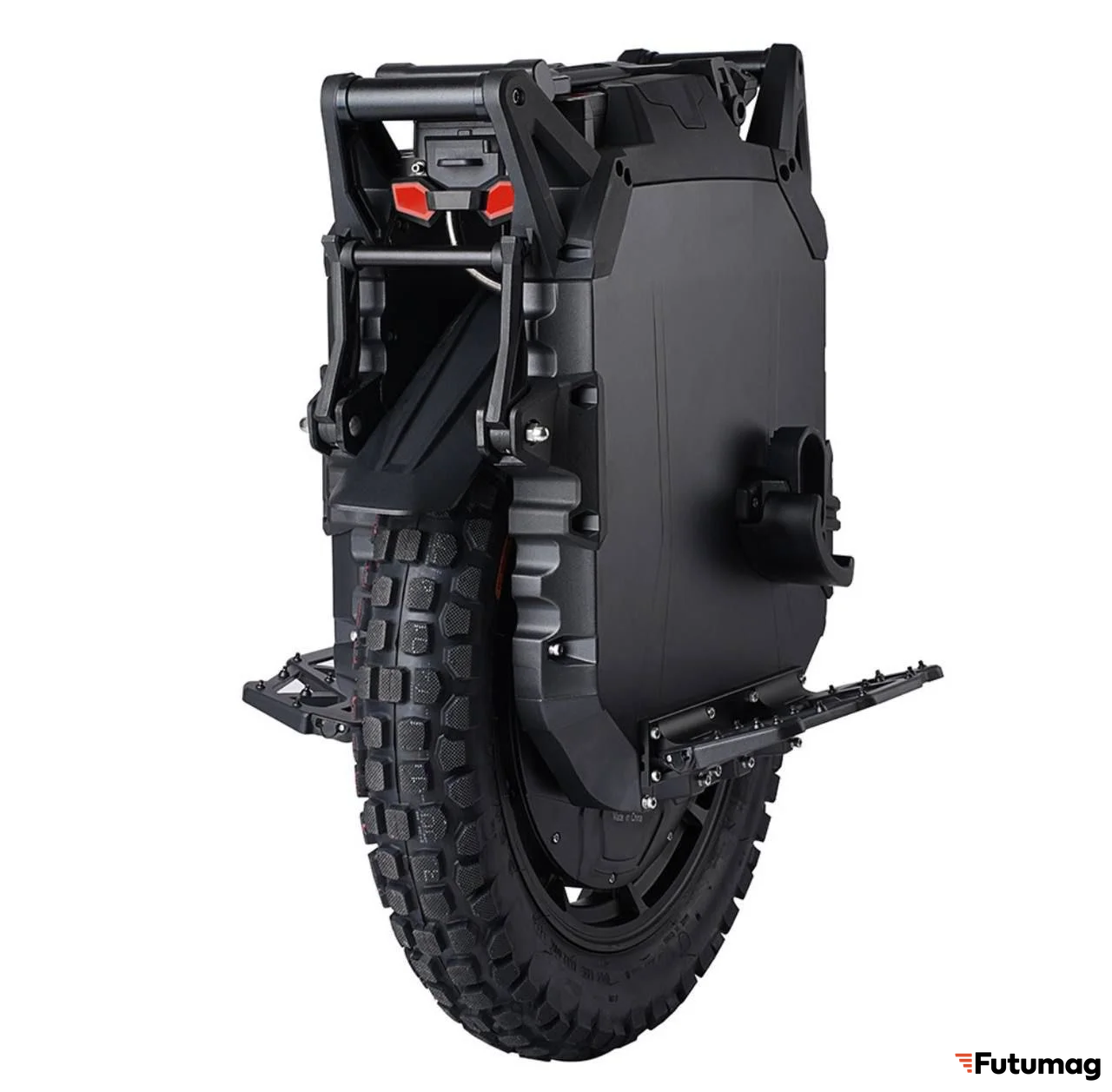 Максимальная нагрузка на моноколесо составляет 150 кг, что подходит для большинства райдеров, включая крупных и высоких людей. При этом вес устройства — 57 кг, что при таких габаритах и характеристиках является нормой и обеспечивает устойчивость на скорости. Вес распределён равномерно, благодаря чему колесо не рыскает на дороге и хорошо держит траекторию даже при резких манёврах. С такой ходовой частью вы будете чувствовать себя уверенно на любой дороге — от гладкого асфальта до разбитого грунта.