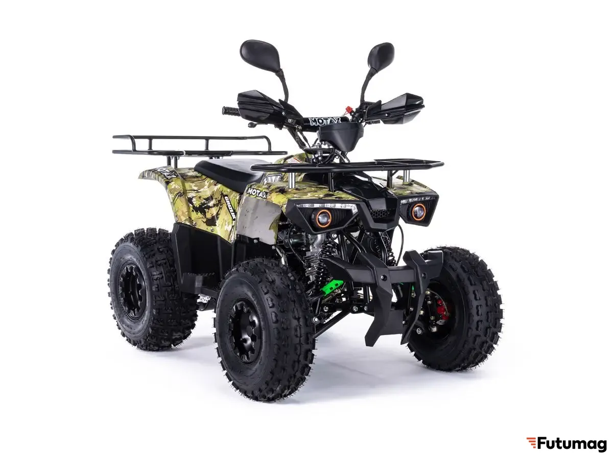 ПроизводительMotaxВозрастная категорияОт 6 летМаксимальная скорость60 км/чЕмкость аккумулятора5000 мАчМаксимальная нагрузка140 кгТормозная системаГидравлические дисковые - спереди и сзадиВес Нетто120 кгЦветЗеленый камуфляжЗвуковой сигналестьФары \ ходовые огниестьПодвескаЗависимаяТип двигателяБензиновыйОбъем двигателя125 см3ТопливоАИ-92Мощность двигателя10 л.с.СтартерЭлектрический -