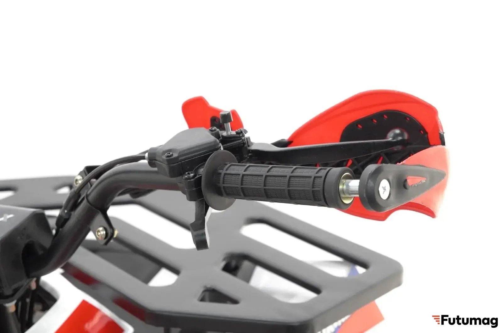 Этот квадроцикл оснащен передним и задним багажником для удобной перевозки мелких грузов или личных вещей. Комплектация включает в себя защиту рук и ручки на передней части для удобства в управлении.