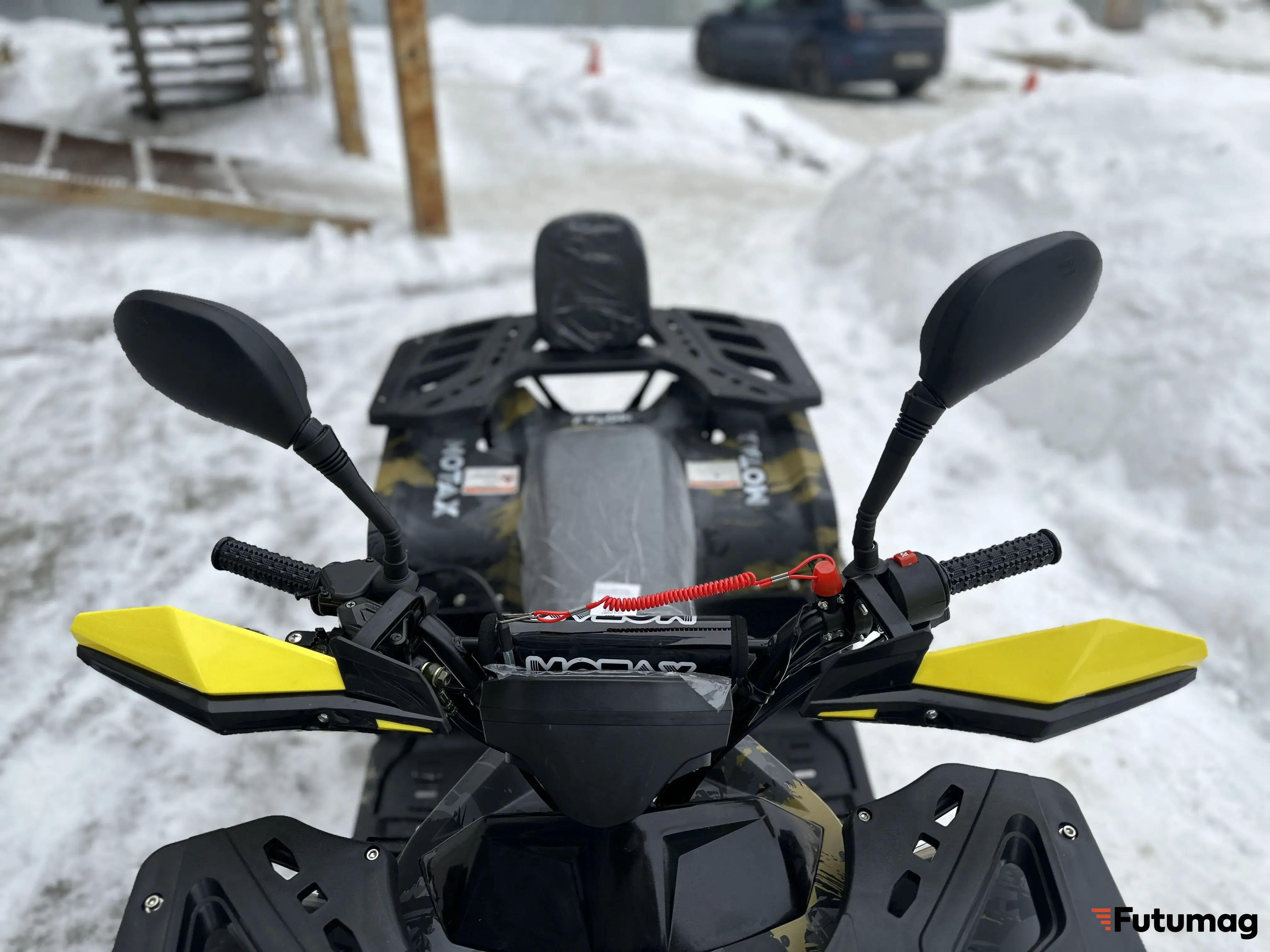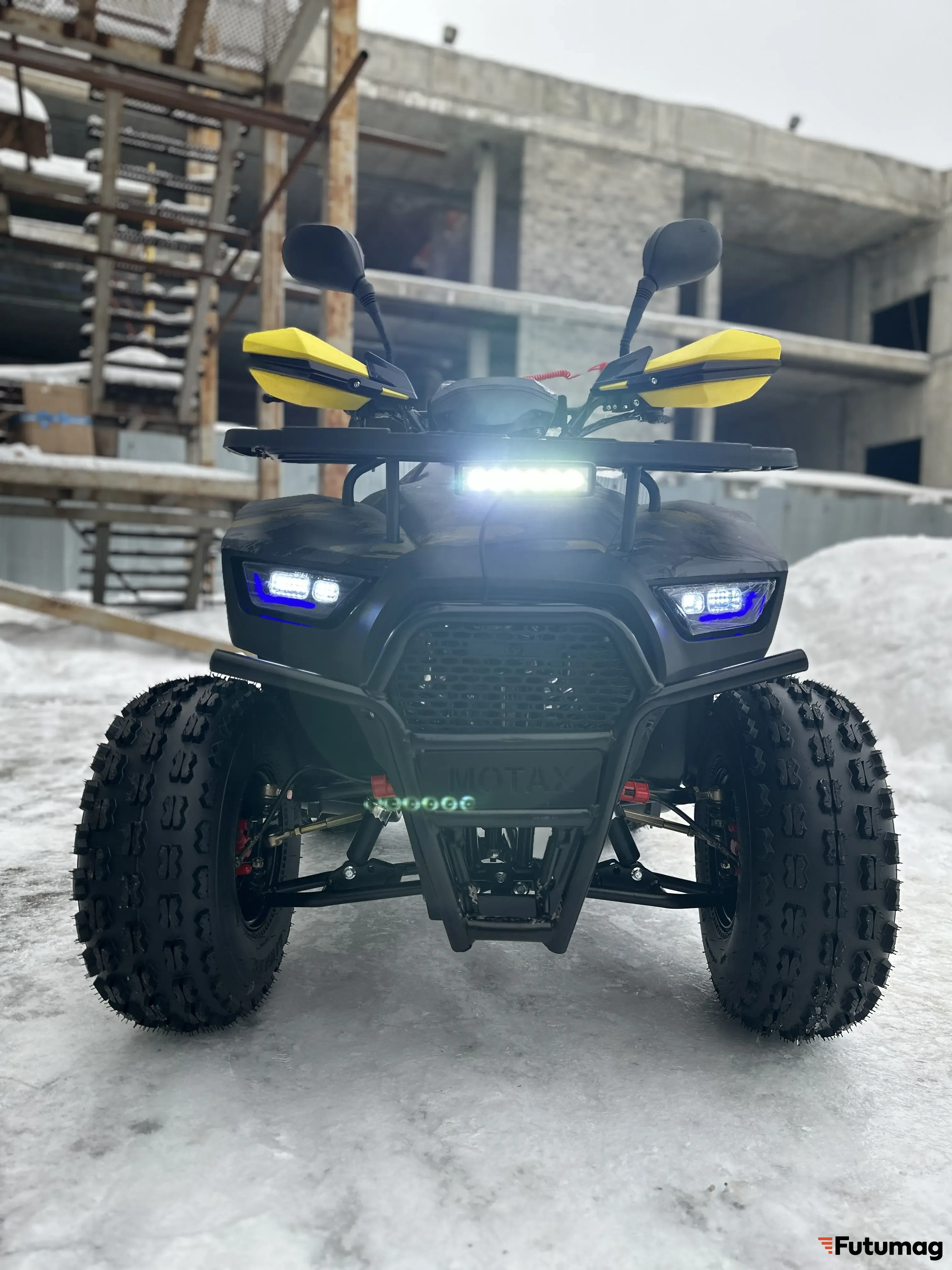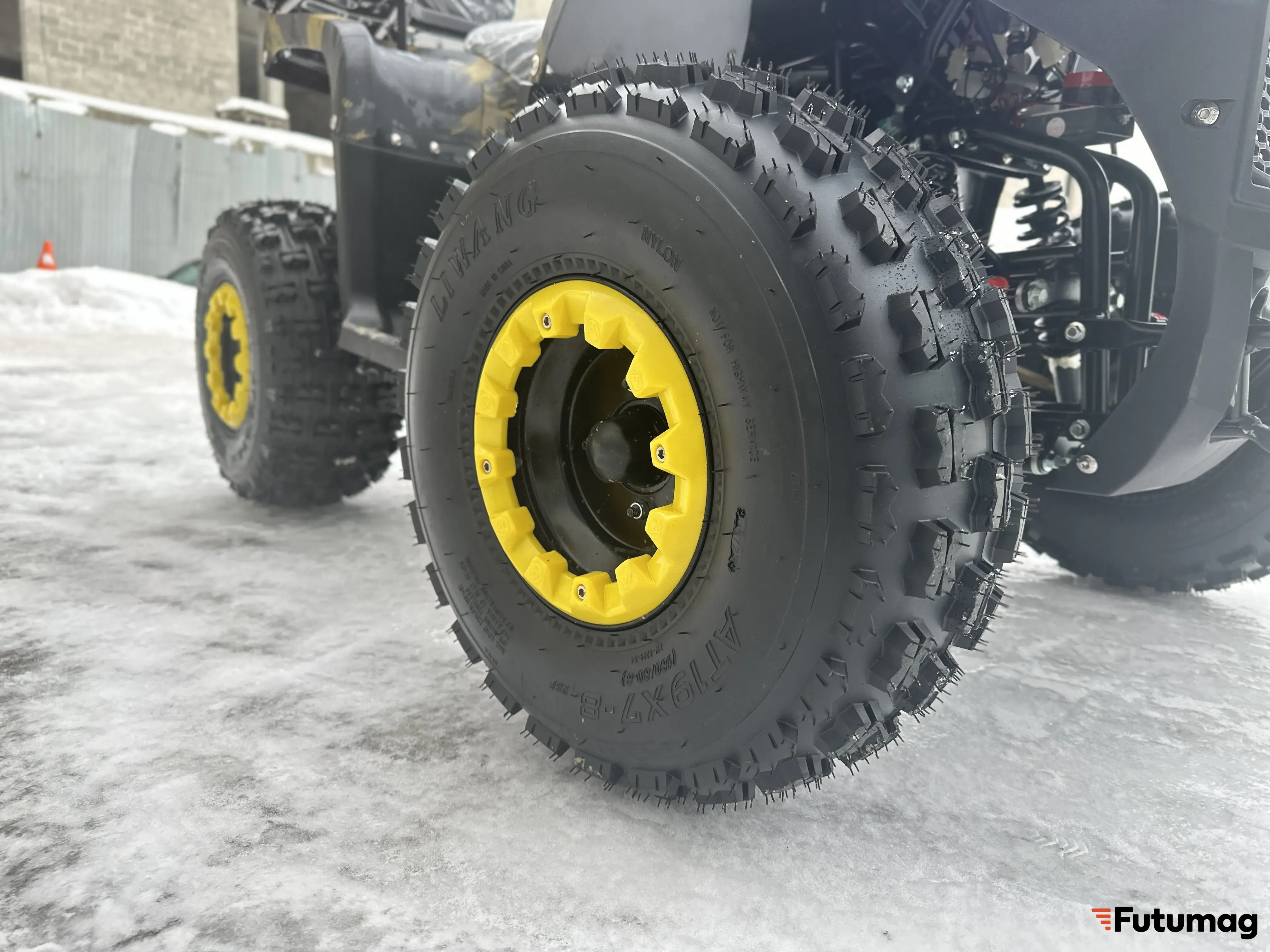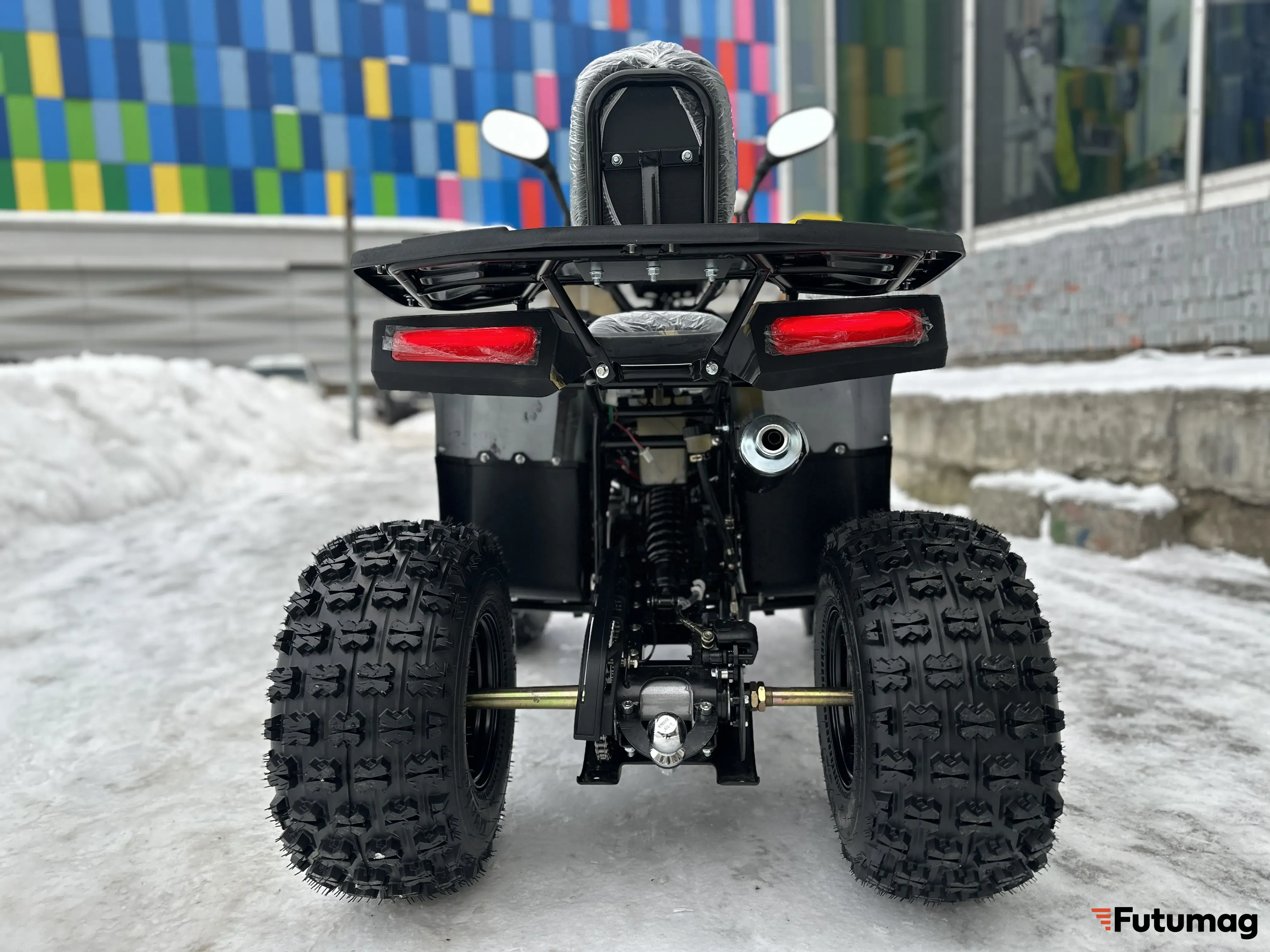 Имеет стильный дизайн с яркими цветами и современными линиями. Квадроцикл оснащен удобным и комфортным сиденьем, которое обеспечивает комфорт при длительных поездках. Широкие покрышки обеспечивают отличное сцепление с дорогой и повышают устойчивость квадроцикла.