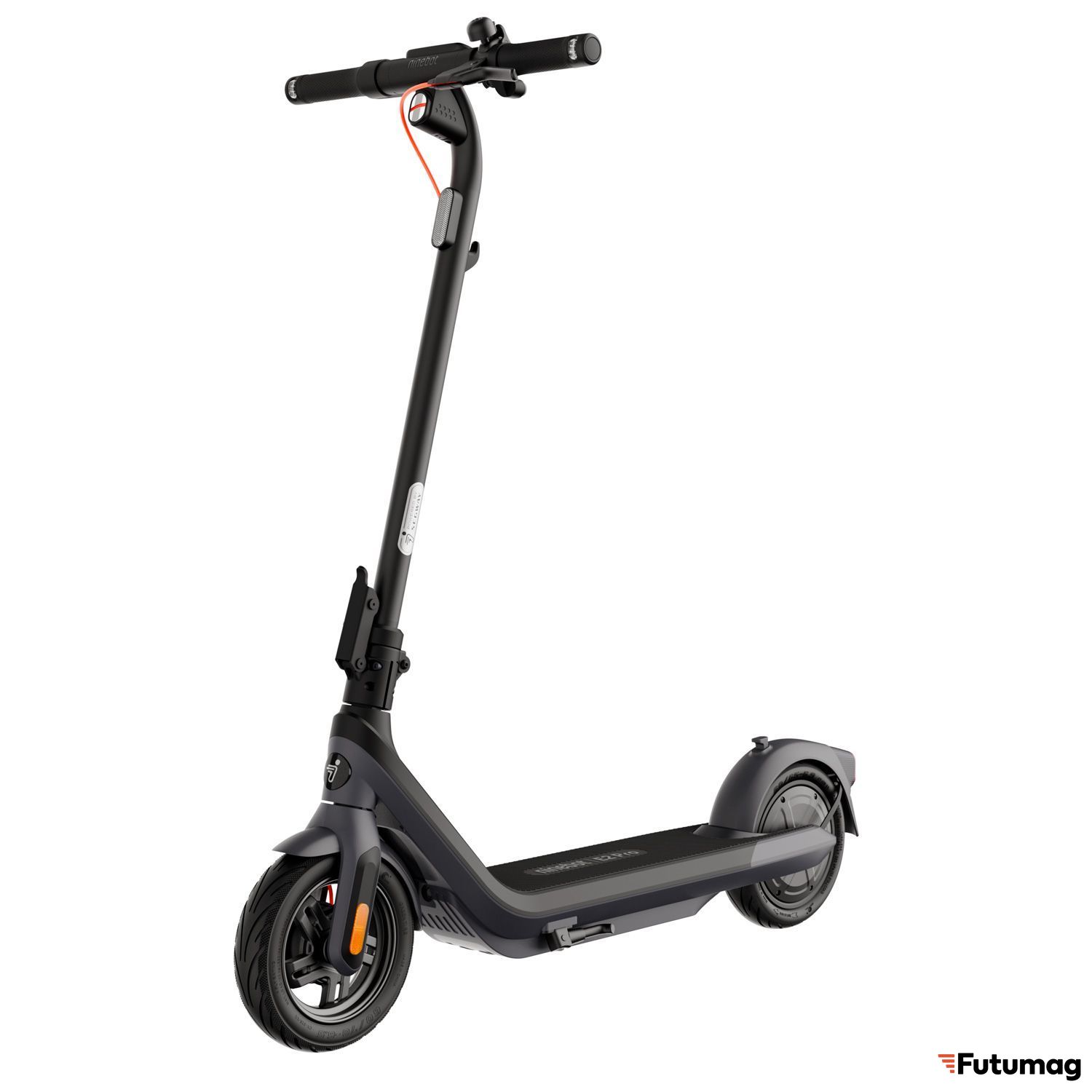 Особенностью этого электросамоката являются 10-дюймовые самовосстанавливающиеся пневматические покрышки, обеспечивающие комфорт и стабильность во время езды. Система контроля тяги (TCS) с антипробуксовочной функцией повышает безопасность и управляемость.