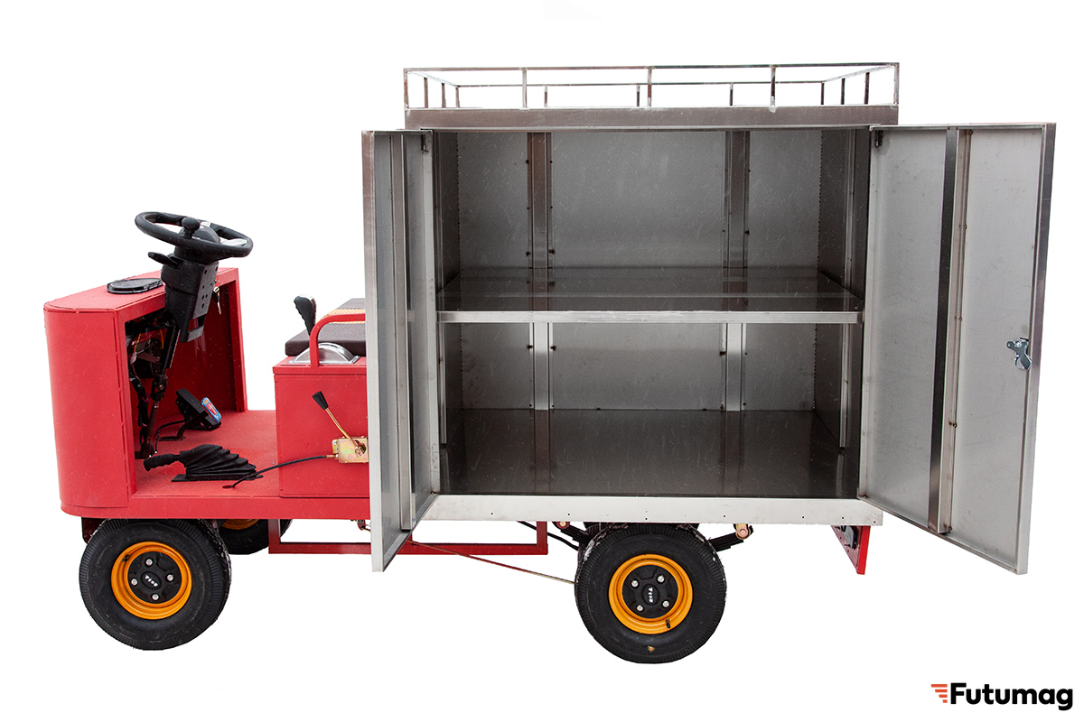 С ярким красным цветом, электротележка не только функциональна, но и выглядит привлекательно, что может стать дополнительным плюсом для компаний, стремящихся подчеркнуть свой имидж.