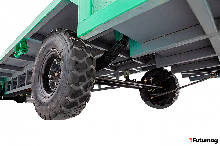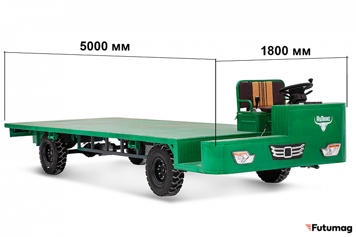Тележка имеет габариты 5000×1800×1200 мм, что обеспечивает достаточно места для размещения больших грузов. Сухой вес в 450 кг и размер колес 6.50-10 обеспечивают отличную устойчивость и проходимость на разных типах поверхностей, что особенно важно при работе в сложных условиях.