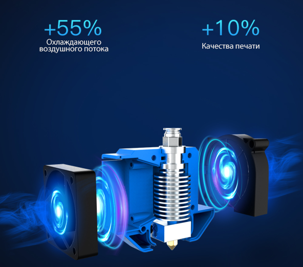 Принтер для обеспечения тихой работы был оснащен драйверами TMC2208. Это позволяет использовать 3д-принтер Creality CR-10 V3 не только в мастерской, но и дома и в офисе.На Creality CR-10 V3 установлен редукторный Titan экструдер и радиатор E3D V6. На экструдере же установлен крупный радиальный кулер 50х50 мм для обдува печатаемой модели и двусторонний обдув, правда при помощи одного кулера.