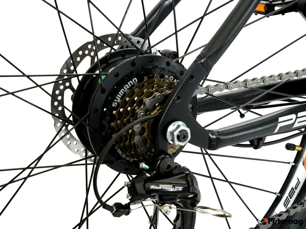 - Привод на заднее колесо. Электромотор мощностью 350 Вт.