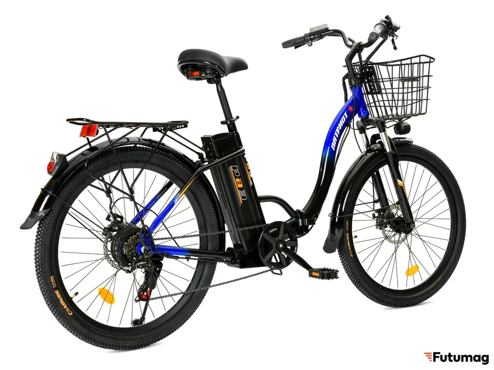 - Быстросъемный литий-ионный (Li-ion) аккумулятор 36 В, 10 Ач. Расположен за подседельным штырем.