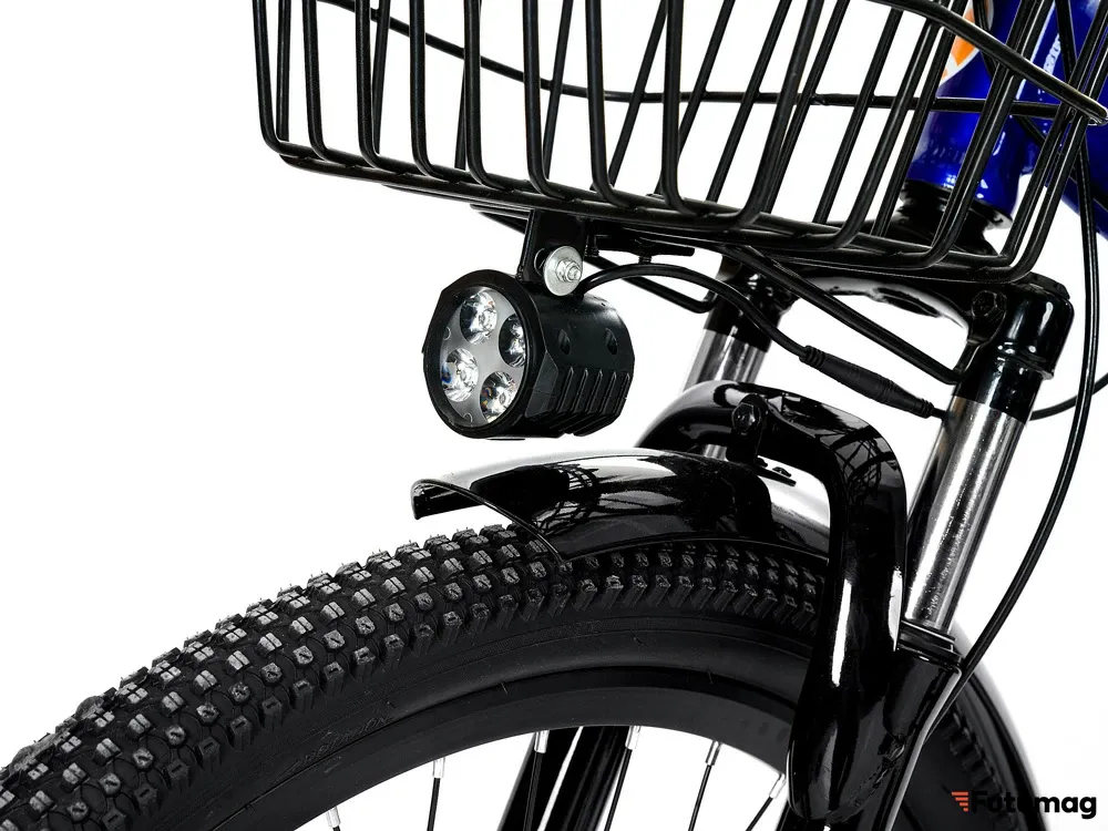 РВЗ Патриот – складной электровелосипед на 26-дюймовых колесах. Для ценителей традиционных полноценных моделей. Подойдет людям высокого роста. Предназначен для поездок по городу и за гордом, оснащен корзиной спереди и задним багажником для перевозки компактных грузов, личных вещей, продуктов, урожая с дачи и т.д.