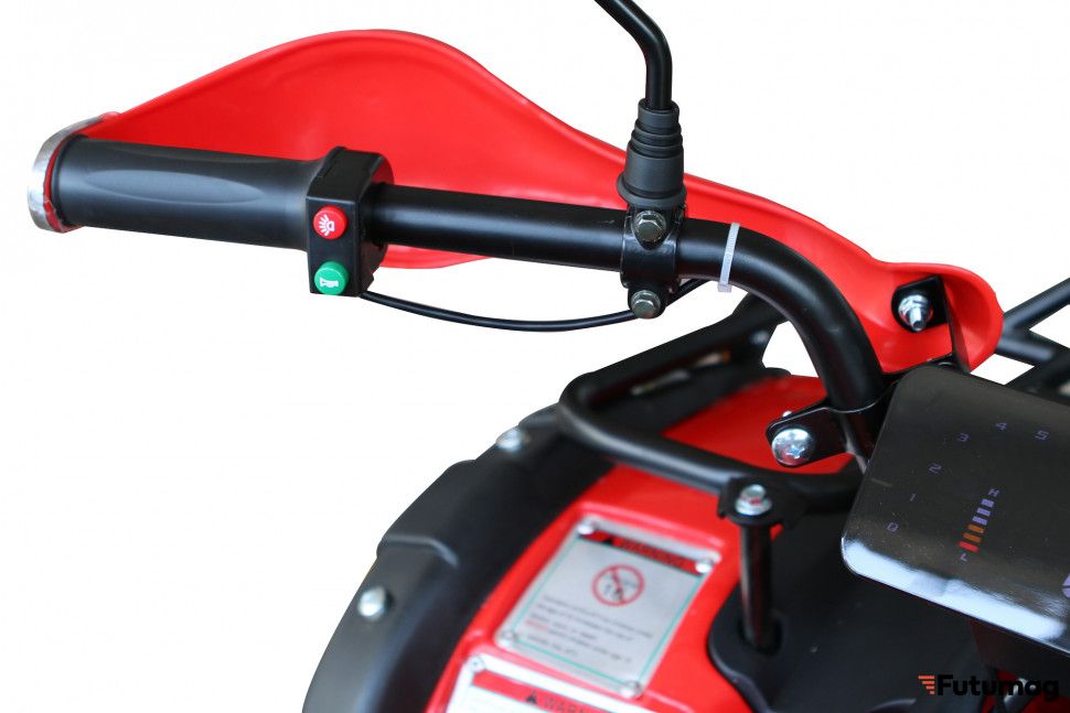 Одной из ключевых особенностей квадроцикла является наличие дифференциала, позволяющего задним колесам вращаться с разными скоростями, что значительно повышает управляемость и проходимость на неровной местности. Батарея повышенной емкостьи 84Ah обеспечивает длительное время работы и впечатляющую дальность поездки вплоть до 110 км.