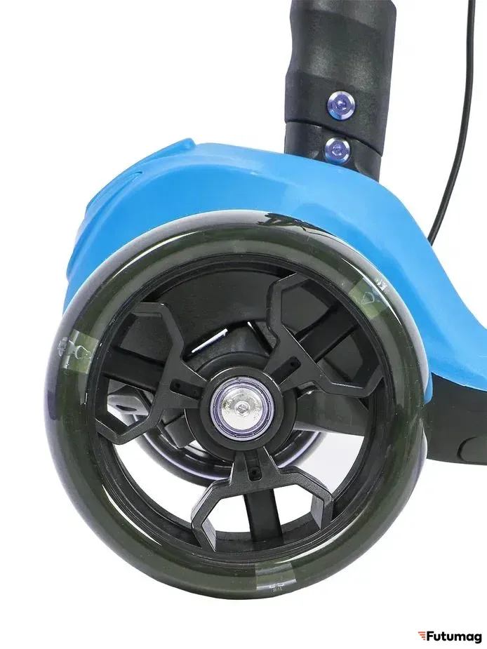 - Складной механизм: Компактный размер в сложенном виде позволяет удобно хранить и транспортировать самокат.