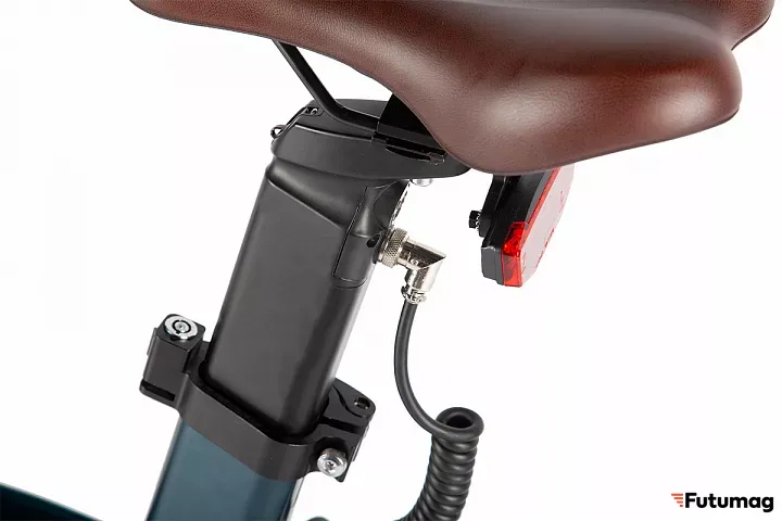 Аккумуляторная батарея на 36 Вольт, ёмкостью 6,8 Ач, изящно встроенная в подседельный штырь с помощью запирающего механизма и эффектного крепления с хромированный разъёмом, обеспечивающим безопасное и надёжное соединение придаёт особое изящество дизайну велосипеда и приковывает к себе внимание!
