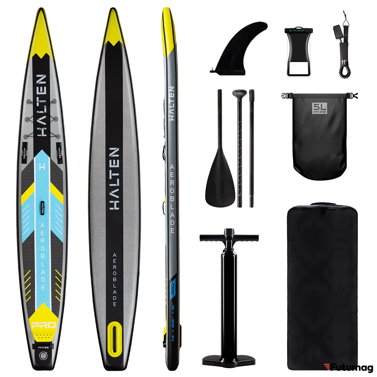Надувной сапборд Halten SP-4 представляет собой удлиненную модель с размерами 427 сантиметров в длину, 63.5 сантиметра в ширину и 15 сантиметров в толщину. Длина 427 сантиметров (14 футов) относит эту модель к классу туринговых сапбордов, предназначенных для длительных переходов, многодневных сплавов и скоростной гребли. Увеличенная длина обеспечивает исключительную курсовую устойчивость и позволяет развивать высокую крейсерскую скорость при каждом гребке.