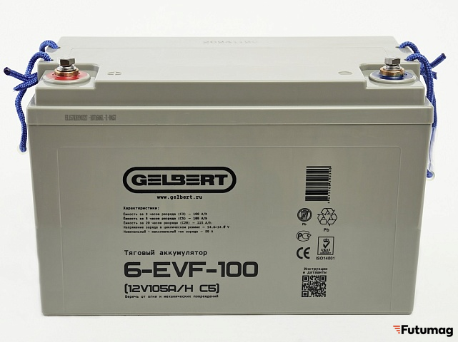 Тяговый аккумулятор Gelbert 6-EVF-100 (12V105A/H C5) — это надежный источник энергии, предназначенный для использования в различных электрических системах и транспортных средствах. С применением технологий AGM VRLA и LiFePo4, этот аккумулятор обеспечивает высокую производительность и долговечность, что делает его идеальным выбором для активного использования.