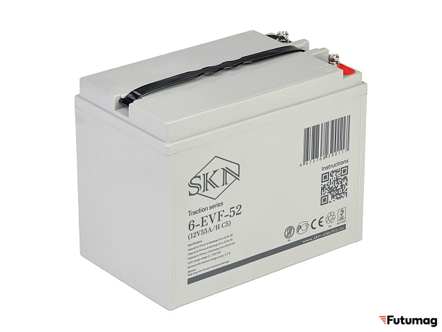Тяговый аккумулятор SKN 6-EVF-52 (12V55A/H C5) — это надежный источник энергии, специально разработанный для различных электрических транспортных средств и оборудования. С рабочим напряжением 12 В и емкостью 60 A/h при 20-часовом разряде (С20), этот аккумулятор обеспечивает стабильную и длительную работу в самых разнообразных условиях эксплуатации.