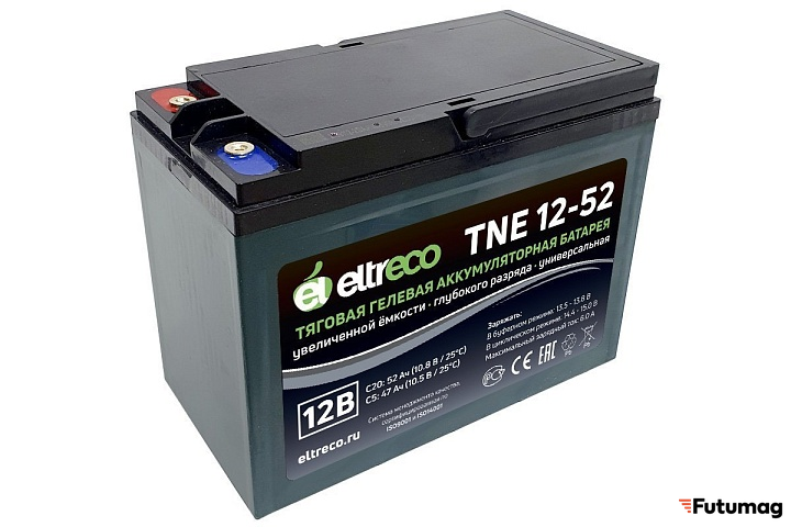 Eltreco TNE12-52 предлагает отличные технические параметры, которые делают его идеальным выбором для различных нужд. Его ёмкость варьируется от 45 A/h при кратковременном разряде (С3) до 52 A/h при более длительном (С20), что позволяет эффективно использовать его в различных условиях. Время зарядки составляет всего 5-8 часов, что делает его удобным для применения в повседневной жизни.