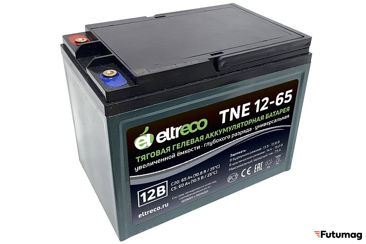 Eltreco TNE12-65 обладает впечатляющими параметрами. Его ёмкость варьируется от 58 A/h при 20-часовом разряде до 65 A/h при 3-часовом, что делает его универсальным решением для множества задач. Время зарядки составляет всего 5-8 часов, что позволяет быстро восстановить его работоспособность.