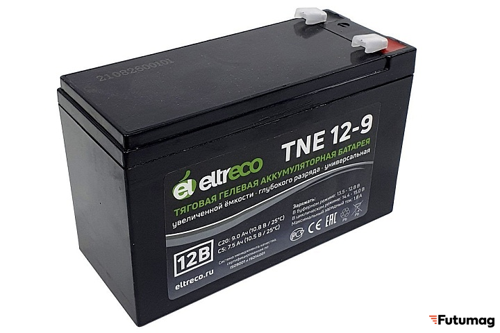 Батарея Eltreco 6-F-9 использует густой гелеобразный электролит, что обеспечивает высокую эффективность и надежность. Герметичная конструкция предотвращает утечку электролита, позволяя эксплуатировать аккумулятор без необходимости в регулярном обслуживании.