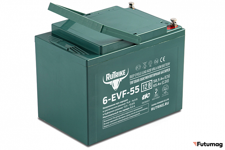 Тяговый аккумулятор RuTrike 6-EVF-55 — это высококачественная необслуживаемая батарея, разработанная с использованием передовых технологий AGM VRLA. С ёмкостью 55 Ач при 3-часовом разряде, этот аккумулятор обеспечивает стабильную и надежную работу в различных условиях.