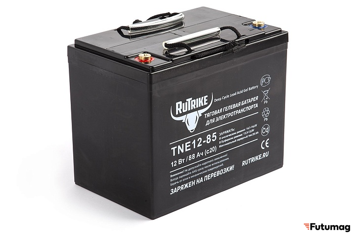 Аккумулятор RuTrike TNE 12-85 имеет рабочее напряжение 12 В и ёмкость 80 A/h при 10-часовом разряде (C10) и 85 A/h при 20-часовом разряде (C20). Его размеры составляют 266×168×208 мм, а вес — 24.5 кг, что позволяет легко интегрировать его в различные устройства. Аккумулятор также оснащён резьбовыми клеммами под болт M6 для удобного подключения.