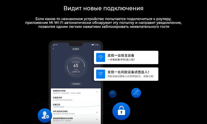 За счет накопленного за долгие годы разработки умных устройств технологического опыта в Redmi Router AC2100 были реализованы лучшие наработки в области безопасности для абсолютного большинства умных устройств на рынке. Всего одной кнопкой можно проверить сеть на наличие утечек, а также предотвратить подслушивание через умную колонку или подглядывание через умную камеру.