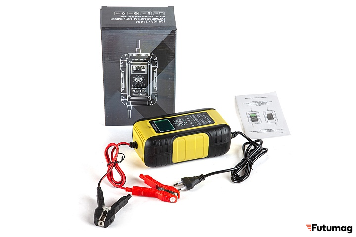 Это полностью автоматическое зарядное устройство использует трехступенчатый алгоритм зарядки, который обеспечивает эффективную и безопасную зарядку. Оно защищает аккумулятор от перезарядки, что позволяет оставлять устройство подключенным на длительное время без риска повреждения батареи. Максимальный зарядный ток составляет от 5 до 10 А, что делает его подходящим для различных моделей аккумуляторов.