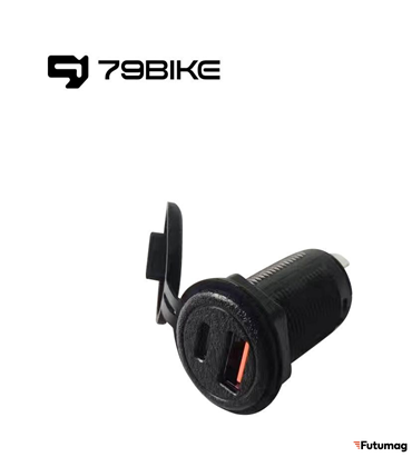 Зарядный модуль 79Bike выполнен в стильном черном цвете и обеспечивает быструю и надежную зарядку. Поддержка как USB, так и Type-C позволяет подзаряжать различные устройства, включая смартфоны, планшеты и другие гаджеты.
