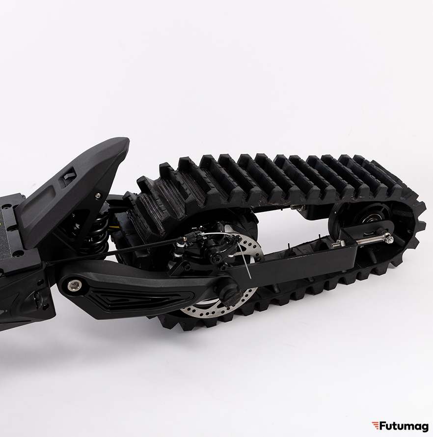 Благодаря оптимальному распределению веса и общей массе всего лишь 39 кг, электроснегокат остаётся лёгким в управлении и манёвренным даже на крутых виражах и склонах.